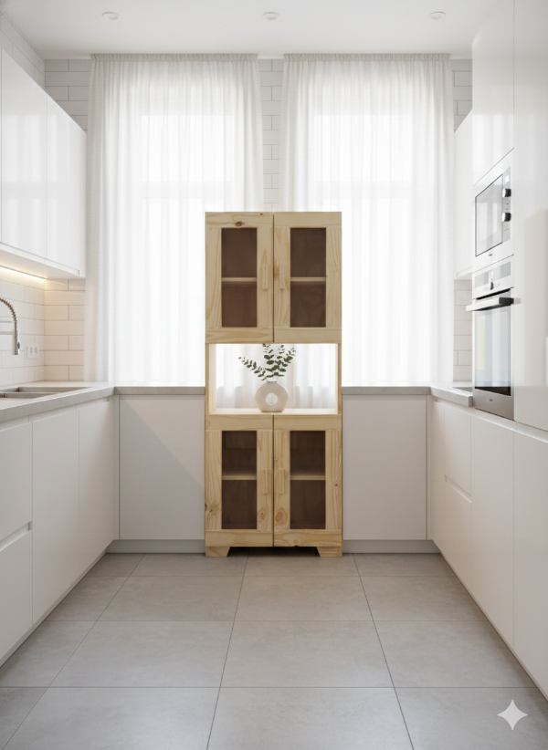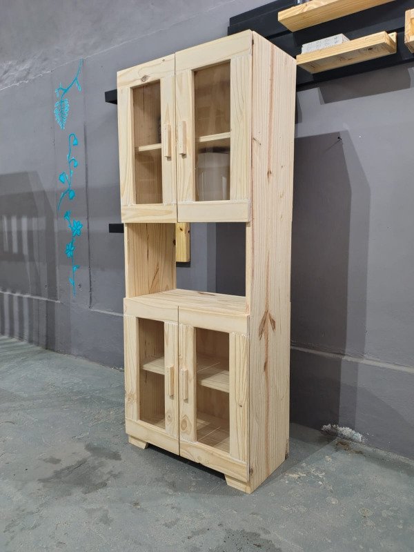 Un diseño práctico y estético que combina la calidez de la madera maciza con la comodidad de tener tus objetos a mano. Gracias a su estante abierto, es ideal para colocar electrodomésticos pequeños (como una cafetera o microondas) o decoración de uso diario.